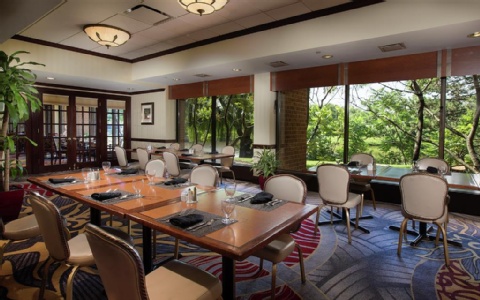 Enjoy fine dining and scenic views from our award-winning restaurant. Our Executive Chef uses the freshest ingredients to create richly flavored American cuisine with an eclectic twist. Our extensive wine menu features the finest selections from around the world and the inviting, sophisticated setting is ideal for a business breakfast or a romantic dinner for two. Serving breakfast and dinner daily.